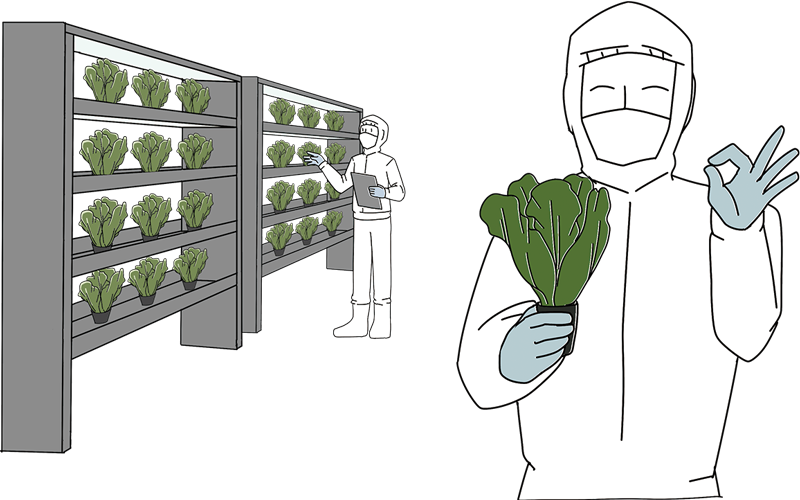 正解は 2 です。 人工光型の植物工場は「建設費が高い」ため生産コストは高くなります。 その代わり、「安定した品質」と「鮮度が長持ちする野菜」を提供できる長所を持ち合わせています。 また、人工光型の栽培では、生食用のリーフレタスが主流です。