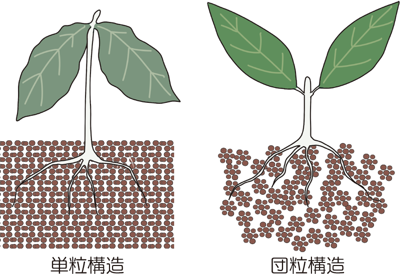 正解は 3 です。 植物を健康に育てるためには、土の粒子や有機物などが結合して小さなかたまりになっている団粒構造(だんりゅうこうぞう)の土が適しています。団粒構造(だんりゅうこうぞう)の土は、適度なすきまがあるため水はけが良く、通気性もあります。